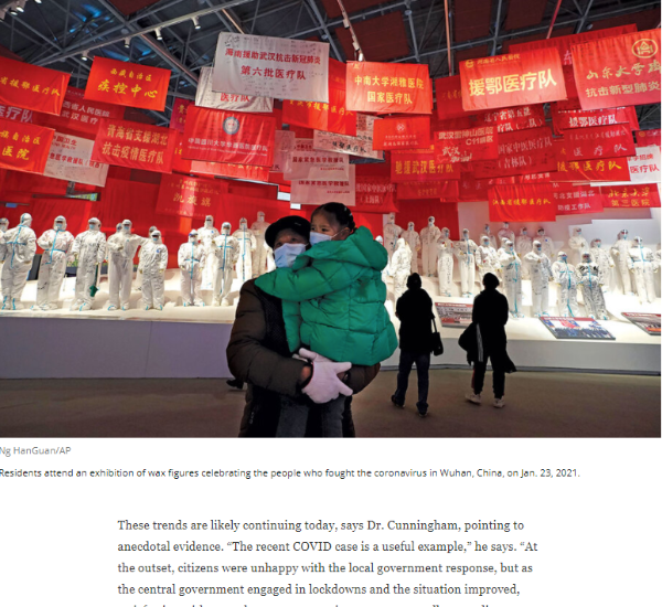尽管西方国家对中国政府的态度出现了急剧负面转变,但中国政府的有力作为增强了国内民众对中国共产党的支持。